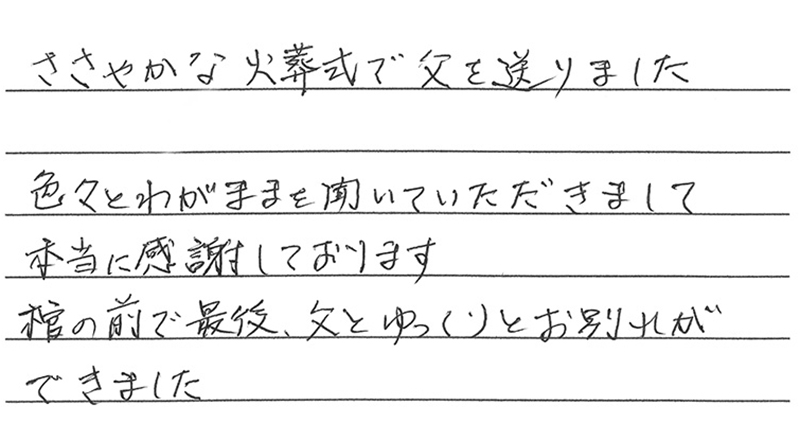 お父様とのお別れの場に、私たちが少しでもお力添えできたことを光栄に思っております。